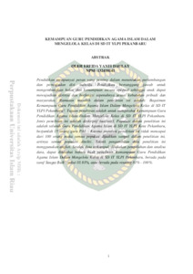 Pendidikan mempunyai peran yang penting dalam menentukan perkembangan dan perwujudan diri individu. Pendidikan bertanggung jawab untuk mengembangkan bakat dan kemampuan secara optimal sehingga anak dapat mewujudkan dirinya dan berfungsi sepenuhnya sesuai kebutuhan pribadi dan masyarakat. Rumusan masalah dalam penelitian ini adalah: Bagaimana Kemampuan Guru Pendidikan Agama Islam Dalam Mengelola Kelas di SD IT YLPI Pekanbaru?. Tujuan penelitian adalah untuk mengetahui Kemampuan Guru Pendidikan Agama Islam Dalam Mengelola Kelas di SD IT YLPI Pekanbaru. Jenis penelitian ini adalah deskriptif kualitatif. Populasi dalam penelitian ini adalah seluruh Guru Pendidikan Agama Islam di SD IT YLPI Kota Pekanbaru, berjumlah 15 orang guru PAI. . Karena populasi penelitian ini tidak mencapai dari 100 orang maka semua populasi dijadikan sampel dalam penelitian ini, artinya semua populasi diteliti. Teknik pengambilan data penelitian ini menggunakan angket. Setelah data terkumpul, dilakukan pengolahan dan analisa data , dapat diketahui bahwa hasil penelitian Kemampuan Guru Pendidikan Agama Islam Dalam Mengelola Kelas di SD IT YLPI Pekanbaru, berada pada taraf Sangat Baik” yakni 88.93%, atau berada pada rentang 81% - 100%.