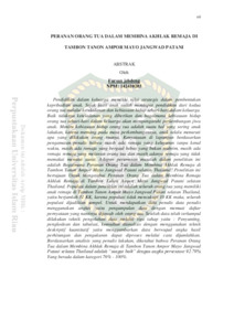 Pendidikan dalam keluarga memiliki nilai strategis dalam pembentukan kepribadian anak. Sejak kecil anak sudah mendapat pendidikan dari kedua orang tua melalui keteladanan dan kebiasaan hidup sehari-hari dalam keluarga. Baik tidaknya keteladanan yang diberikan dan bagaimana kebiasaan hidup orang tua sehari-hari dalam keluarga akan mempengaruhi perkembangan jiwa anak. Meniru kebiasaan hidup orang tua adalah suatu hal yang sering anak lakukan, karena memang pada masa perkembangannya, anak selalu menuruti apa yang dilakukan orang tuanya. Kenyataaan di lapangan berdasarkan pengamatan penulis bahwa masih ada remaja yang keluyuran tanpa kenal waktu, masih ada remaja yang bergaul bebas yang bukan muhrim, masih ada remaja remaja yang melawan orang tua dan masih adanya remaja yang tidak memakai menutut aurat. Adapun perumusan masalah dalam penelitian ini adalah Bagaimana Peranan Orang Tua dalam Membina Akhlak Remaja di Tambon Tanon Ampor Mayo Jangwad Patani selatan Thailand?.Penelitian ini bertujuan Untuk Mengetahui Peranan Orang Tua dalam Membina Remaja Akhlak Remaja di Tambon Tabon Ampor Mayo Jangwad Patani selatan Thailand. Populasi dalam penelitian ini adalah seluruh orang tua yang memiliki anak remaja di Tambon Tanon Ampor Mayo Jangwad Patani selatan Thailand, yaitu berjumlah 31 KK, karena populasi tidak mencukupi 10 KK maka, seluruh populasi dijadikian sampel. Untuk mendapatkan data penulis data penulis menggunakan angket yaitu pengumpulan data dengan memuat daftar pernyataan yang nantinya dijawab oleh orang tua. Setelah data telah terkumpul dilakukan teknik pengolahan data melalui tiga tahap yaitu : Penyunting, pengkodean dan tabulasi, kemudian dianalisis dengan menggunakan teknik deskriptif kuantitatif yaitu menggambarkan data berwujud angka hasil perhitungan dan pengukuran dapat diproses melalui cara dijumlahkan. Berdassarkan analisis yang penulis lakukan, diketahui bahwa Peranan Orang Tua dalam Membina Akhlak Remaja di Tambon Tanon Ampor Mayo Jangwad Patani selatan Thailand adalah “sangat baik” dengan angka persentase 92.79% Yang berada dalam kategori 76% - 100%.