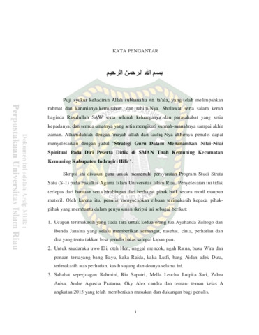 Topiani, Lusi (2018) Strategi Guru Dalam Menanamkan Nilai-Nilai Spiritual Pada Diri Peserta Didik Di Sman Tuah Kemuning Kecamatan Kemuning Kabupaten Indragiri Hilir. Other thesis, Universitas Islam Riau.