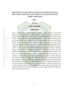 Masrur, Masrur (2018) Kreativitas Guru Mengajar Dalam Meningkatkan Minat Belajar Siswa Mts Sabiluttaufiq Kabupaten Indra Giri Hilir. Other thesis, Universitas Islam Riau.