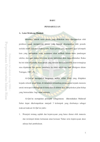 Al-Qur’an adalah kitab suci yang diturunkan Allah SWT kepada Nabi Muhammad SAW dalam lafaz Arab sebagai salah satu rahmat yang tiada taranya bagi alam semesta. Didalamnya terkumpul wahyu ilahi yang menjadi petunjuk, pedoman dan pelajaran bagi siapa yang mempercayai dan mengamalkannya. Membacanya bernilai ibadah dan mengamalkannya merupakan kewajiban yang diperintahkan dalam agama. Seorang muslim harus mampu membaca ayat-ayat Al-Qur’an dengan baik dan benar seperti yang diajarkan oleh Rasulullah SAW. Berkenaan dengan kemampuan membaca Al-Qur’an, murid berperan besar terhadap pentingnya kemampuan membaca Al-Qur’an. Pembelajaran ilmu tajwid dengan baik dan benar merupakan bagian yang penting bagi murid untuk bisa membaca Al-Qur’an dengan baik dan benar, dengan perkataan lain memahami ilmu tajwid dengan baik seharusnya merupakan meteri atau ruang lingkup mempelajari AlQur’an. Penelitian ini bertujuan untuk mengetahui kemampuan murid dalam membaca Al-Qur’an di kelas V Tadika Nurul Iman Cerong Daerah Mayo Provinsi Patani (Selatan Thailand). Adapun jumlah murid sebanyak 12 orang murid, alasannya murid kelas V adalah kelas tertinggi di Tadika, sehingga di harapkan mampu memahami maksud dan tujuan pelaksanaan penelitian. Yang menjadi sampel adalah murid kelas V Tadika Nurul Iman Cerong Daerah Mayo Provinsi Patani (selatan Thailand). Setelah penelitian ternampak adanya gejala-gejala murid yang kurang membaca Al-Quran dengan baik dan benar dapat dilihat yaitu: ada sebagian murid ketika mengikut materi bacaan solat, tafsir dan materi-materi yang lain yang berkaitan dengan al-Qur’an banyak yang tidak mampu membaca Al-Qur’an dengan baik dan benar. Penelitian ini dilakukan dengan menggunakan Tes baca Al-Qur’an.. Adapon hasil penelitian menunjukan bahwa kemampuan membaca Al-Qur’am Murid Kelas V Tadika Nurul Iman Cerong Daerah Mayo Provinsi Patani (Selatan Thailand) adalah Cukup dengan persentase 63.39%.