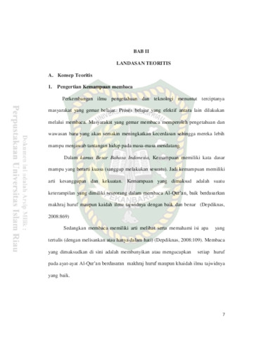 Dokho, Miss Yamilah (2018) Kemampuan Membaca Al-Qur’an Murid Kelas V Tadika Nirul Iman Cerong Daerah Mayo Provinsi Patani(Selatan Thailand). Other thesis, Universitas Islam Riau.