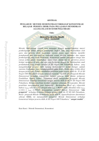 Delpi, Moalina Selma (2018) Pengaruh Metode Demonstrasi Terhadap Konsentrasi Belajar Peserta Didik Pada Pelajaran Pendidikan Agama Islam Di Sd 048 Pekanbaru. Other thesis, Universitas Islam Riau.