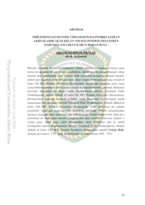 Metode ceramah dalam pembelajaran akidah akhlak merupakan strategi yang harus diwujudkan dalam proses pendidikan, dalam rangka pengembangan sikap mental dan kepribadian agar peserta didik menerima pelajaran dengan mudah, efektif dan dapat di cerna dengan baik. Akan tetapi permasalahan yang terjadi di kelas VII MTs Pondok Pesantren Darussalam, masih ada beberapa guru yang yang belum memahami secara tuntas langkah-langkah metode ceramah. Rumusan masalah penelitian ini bagai mana Implementasi Metode Ceramah Pada Pembelajaran Akidah Akhlak di kelas VII MTs Pondok Pesantren Darussalam. Berdasarkan rumusan masalah tersebut, maka penelitian ini bertujuan untuk mengetahui Implementasi Metode Ceramah Pada Pembelajaran Akidah Akhlak di kelas VIII MTs Pondok Pesantren Darussalam. Jenis penelitian ini adalah penelitian lapangan yang bersifat deskriptif kualitatif. Teknik pengumpulan datanya menggunakan observasi dan dokumentasi. Untuk memperoleh data dari penelitian ini digunakan metode pengumpulan data melalui observasi kepada 1 orang guru. Data yang telah dikumpulkan akan dianalisis dan di ambil kesimpulan bahwa Implementasi Metode Ceramah Pada Pembelajaran Akidah Akhlak di kelas VIII MTs Pondok Pesantren Darussalam adalah Cukup Baik, dengan persentase 75% yang terletak pada rentang antara 56% - 75%.