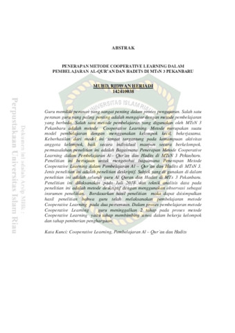 Heriadi, Muhd. Ridwan (2018) Penerapan Metode Cooperative Learning Dalam Pembelajaran Al-Qur’an Dan Hadits Di Mtsn 3 Pekanbaru. Other thesis, Universitas Islam Riau.