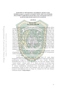 Al-Qur’an sebagai kitab suci umat Islam yang menjadi pedoman dalam kehidupannya tidak akan berfungsi sebagaimana mestinya apabila tidak dibaca dan dipahami isinya. Membaca al-Qur’an dengan tajwid hukumnya fardu ‘ain bagi setiap muslim. Sebagaimana yang Allah firmankan di dalam Q.S. AlMuzammil ayat 4. Adapun cara membacanya adalah dengan perlahan-lahan, benar pengucapan huruf-hurufnya dan tempat panjang pendeknya sesuai ilmu tajwid. Kemampuan menerapkan hukum bacaan Al-Qur’an merupakan suatu hal yang harus dimiliki oleh setiap mukmin, apalagi anak-anak yang baru belajar membaca Al-Qur’an. Berdasarkan pendahuluan yang penulis lakukan penulis masih menemukan gejala-gejala diantaranya ialah masih ada siswa yang sudah mengetahui tentang makharijul huruf, namun belum mampu menerapkan di dalam membaca Al-Qur’an. Berangkat dari persoalan tersebut, maka penulis melakukan penelitian dengan rumusan: Bagaimana kemampuan menerapkan makharijul huruf pada pembelajaran Al-Qur’an Hadits Siswa SMP IT di Pondok Pesantren Sahrudiniyah di Desa Sei. Pagar Kecamatan Kampar Kiri Hilir Kabupaten Kampar. Untuk menjaring data di lapangan penelitian ini menggunakan teknik pengumpulan data melalui tes, dan dokumentasi. Penelitian ini menggunakan analisa deskriftif kualitatif dengan menggunakan rumus, P =