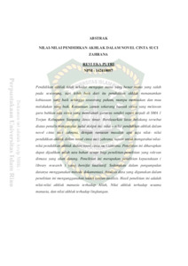 Pendidikan akhlak tidak sekedar mengajar mana yang benar mana yang salah pada seseorang, tapi lebih baik dari itu pendidikan akhlak menanamkan kebiasaan yang baik sehingga seseorang paham, mampu merasakan dan mau melakukan yang baik. Kenyataan zaman sekarang banyak siswa yang melawan guru bahkan ada siswa yang membunuh gurunya sendiri sepeti terjadi di SMA 1 Torjun Kabupaten Sampang Jawa timur. Berdasarkan latar belakang tersebut diatas penulis mengangkat judul skripsi ini: nilai – nilai pendidikan akhlak dalam novel cinta suci zahrana, dengan rumusan masalah apa saja nilai- nilai pendidikan akhlak dalam novel cinta suci zahrana, tujuan untuk mengetahui nilainilai pendidikan akhlak dalam novel cinta suci zahrana. Penelitian ini diharapkan dapat dijadikan salah satu bahan acuan bagi penelitian-penelitian yang relevan dimasa yang akan datang. Penelitian ini merupakan penelitian kepustakaan ( library research ) yang bersifat kualitatif. Sedangkan dalam pengumpulan datanya menggunakan metode dokumentasi. Analisis data yang digunakan dalam penelitian ini mengunggunakan teknik conten analisis. Hasil penelitian ini adalah nilai-nilai akhlak manusia terhadap Allah, Nilai akhlak terhadap sesama manusia, dan nilai akhlak terhadap lingkungan.