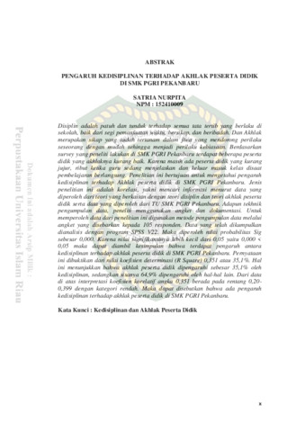 Nurpita, Satria (2018) Pengaruh Kedisiplinan Terhadap Akhlak Peserta Didik Di SMK PGRI Pekanbaru. Other thesis, Universitas Islam Riau.