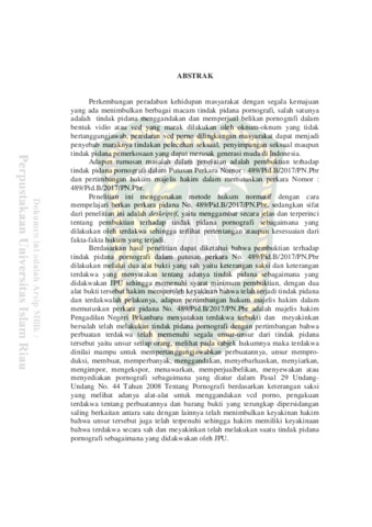 Pulungan, Safawi Izhar (2018) Analisis Yuridis Pembuktian Terhadap Tindak Pidana Pornografi Dalam Putusan Perkara Nomor : 489/Pid.B/2017/PN.Pbr. Other thesis, Universitas Islam Riau.