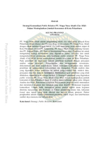 PT. Niaga Nusa Abadi is a developer of mild class cigarette for Pekanbaru City in particular and Riau Province in general. PT. Niaga Nusa Abadi with mainstay cigarette brand clas mild holding market share number four in Pekanbaru city after PT. Sampoerna, PT. Surya Madistrindo (Gudang Garam) and PT. Bentoel Prima (PT Bentoel Internasional Investama). This research is to know the communication strategy used by public relations and to know the supporting factor and the obstacles of public relations PT. Niaga Nusa Abadi (Clas Mild) in increasing the number of consumers in Pekanbaru City. In this study used qualitative research methods with the presentation of descriptive analysis. Data collection using interviews, documentation and literature study. To achieve the validity of the data, researchers use the method of participation and Triangulation. Data analysis techniques in this study is data collection, data reduction, data presentation, and draw conclusions. Based on the research that has been done, the results are:1) Communication strategy used by public relations PT. Niaga Nusa Abadi (Clas Mild) in increasing the number of consumers in the city of Pekanbaru can be described in several stages: with Analysis and Research, Policy formulation. Create a program to map and determine the activities and actions to be taken. Engaging in communication activities. Feedback is the process of elucidation where community-completed activities, and Evaluations. 2) Supporting factors include, the strength of a brand or brand that has been known and innovation in promotion. Inhibiting factors are government regulation, illegal cigarette traffic, and limited human and infrastructure resources.