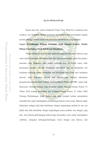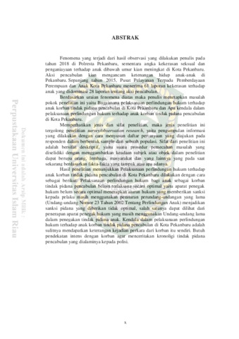 Ardinata, Deo (2018) Upaya Perlindungan Hukum Terhadap Anak Sebagai Korban Tindak Pidana Pencabulan (Studi di Polresta Pekanbaru). Other thesis, Universitas Islam Riau.