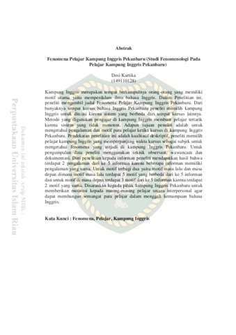 Kartika, Desi (2018) Fenomena Pelajar Kampung Inggris Pekanbaru (Studi Fenomenologi Pada Pelajar Kampung Inggris Pekanbaru). Other thesis, Universitas Islam Riau.