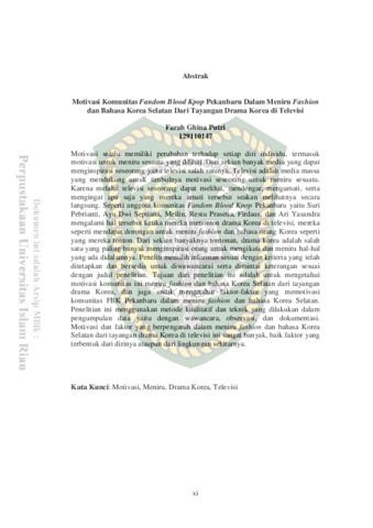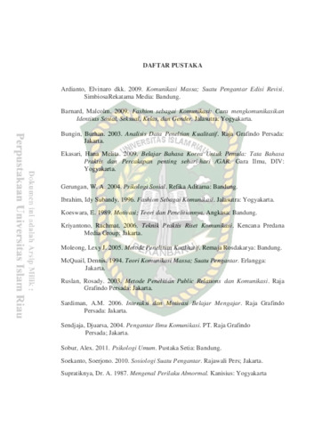 Putri, Farah Ghina (2018) Motivasi Komunitas Fandom Blood Kpop Pekanbaru Dalam Meniru Fashion Dan Bahasa Korea Selatan Dari Tayangan Drama Korea di Televisi. Other thesis, Universitas Islam Riau.