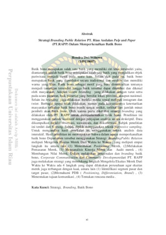 Wibowo, Hendra Dwi (2018) StrategiBrandingPublic RelationPT. Riau AndalanPulpandPaper (PT.RAPP) Dalam Memperkenalkan Batik Bono. Other thesis, Universitas Islam Riau.