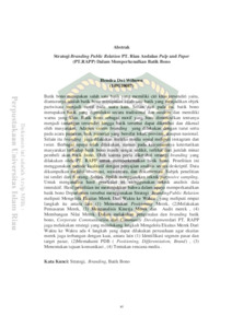 Batik bono is one of the batik that has its own characteristics, batik bono is one of the batik that makes the object of tourism to be a motif on a cloth. Batik bono is a batik that produced traditionally and modern and has a distinctive color. Batik bono as a newly emerging motif of course be a challenge to RAPP until the batik can be known by the public. RAPP branding system is done by participating in the exhibition, whether it is local, provincial, or national exhibitions. In addition, branding is also done through social media including instagram and twier. Various efforts have been done by RAPP but in fact, just few people interest in batik bono, it can be seen from the amount of interest buyers of batik bono product. Therefore, this research is done to know the branding strategy that undertaken by PT. RAPP to introduce batik bonos.This research uses qualitative method by presenting descriptive analysis. Data were collected through observation, interviews, and documentation. The subjects of this study consisted of 6 people. The subjects were chosen using purposive sampling technique. To analyze the results of this study using interactive data analysis techniques. The results of this research indicate that done by PT.RAPP to introducing batik bono, Department uses BrandingPublic Relation Strategies include Managing Brand Equity FromTime to Time, which includes four steps ,such as ; (1) Determining Brand Positioning, (2) Brand Marketing, (3) Analyze Brand Performance and Brand Audit, (4) Building Brand Value. In conducting the introduction and branding of batik bono, Corporate Communication and Community Development from PT. RAPP also performs strategies that support the steps of Managing Brand Equity From Time to Time, there are 4 steps that a company can take to strengthen its brand equity, among others(1) Identify market segments and target markets (2)UnderstandPDBPositioning, Differentiation, Brand, (3) Determine the purpose of communication, (4) Determine the media plan.
