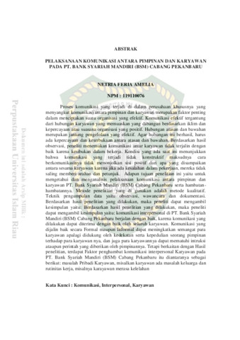 Amelia, Netria Feria (2018) Pelaksanaan Komunikasi Antara Pimpinan Dan Karyawan Pada Pt. Bank Syariah Mandiri (Bsm) Cabang Pekanbaru. Other thesis, Universitas Islam Riau.