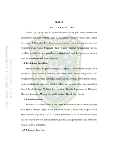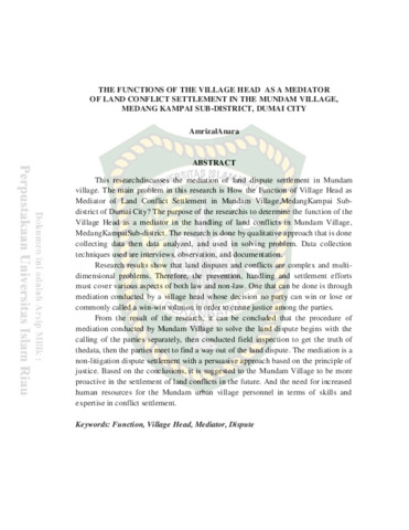 Anara, Amrizal (2018) Fungsi Lurah sebagai Mediator Penyelesaian Konflik Pertanahan di Kelurahan Mundam Kecamatan Medang Kampai. Other thesis, Universitas Islam Riau.