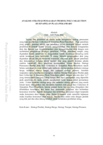 The purpose of this research is to know the proper marketing strategy of Inez Collection product at Senapelan Plaza Pekanbaru. The type of research that the authors use is the type of descriptive survey research with quantitative research methods because researchers collect data by analyzing data and by way of describing or describing the data by way of observation at the place of research. Sampling technique used in this study using the technique of Insedental Sampling is for consumers who numbered 79 people. Methods of data collection used is to spread questionnaires, observations on the place of research and documentation. The data analysis technique that researchers do is a quantitative analysis. The results showed that Product Marketing Strategy Analysis at Inez Collection at Senapelan Plaza Pekanbaru still not maximal, this can be seen in indicator of product strategy, indicator of price strategy, indicator of place strategy and indicator of promotion strategy. Overall respondent's answer about Product Marketing Strategy Analysis at Inez Collection at Senapelan Plaza Pekanbaru is with average score 3.37 which indicates category Simply Agree. From the conclusions obtained in this study, the authors provide advice to the company that is: For the indicator of pricing strategy and indicators of promotional strategies are still weak should be increased and re-evaluated by the Inez Collection at Senapelan Plaza Pekanbaru, because the seller must know what is desired and needed by consumers, and should be able to meet the wants and needs of these consumers. If the wishes and needs of consumers can be met then consumers will feel satisfied. If consumers already have satisfaction then the loyalty of consumers will be maintained, they will always be faithful to the products we sell and will come back to make repurchase.