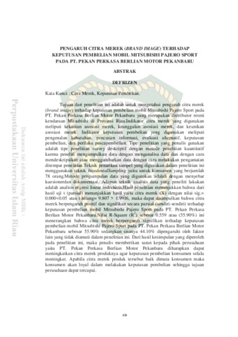Defrizen, Defirzen (2018) Pengaruh Citra Merek (Brand Image) Terhadap Keputusan Pembelian Mobil Mitsubishi Pajero Sport Pada Pt. Pekan Perkasa Berlian Motor Pekanbaru. Other thesis, Universitas Islam Riau.