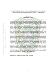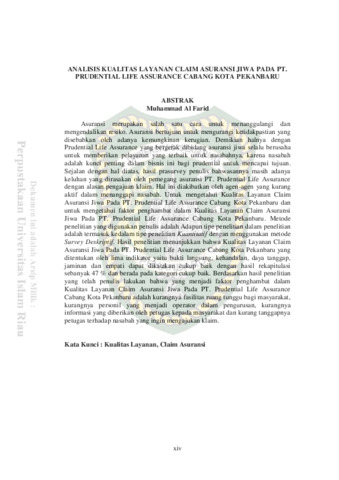 Al Farid, Muhammad (2018) Analisis Kualitas Layanan Claim Asuransi Jiwa Pada Pt. Prudential Life Assurance Cabang Kota Pekanbaru. Other thesis, Universitas Islam Riau.