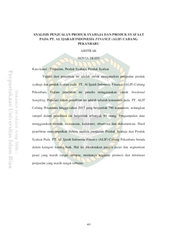 Desti, Novia (2018) Analisis Penjualan Produk Syahaja Dan Produk Syafaat Pada Pt. Al Ijarah Indonesia Finance (Alif) Cabang Pekanbaru. Other thesis, Universitas Islam Riau.