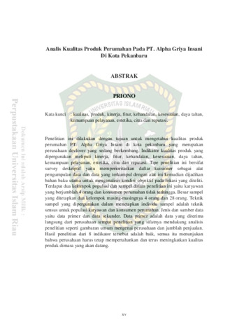 Penelitian ini dilakukan dengan tujuan untuk mengetahui kualitas produk perumahan PT. Alpha Griya Insani di kota pekanbaru yang merupakan perusahaan devlover yang sedang berkembang. Indikator kualitas produk yang dipergunakan meliputi kinerja, fitur, kehandalan, kesesuaian, daya tahan, kemampuan pelayanan, estetika, citra dan reputasi. Tipe penelitian ini bersifat survey deskriptif yaitu memperioritaskan daftar kuisioner sebagai alat pengumpulan data dan data yang terkumpul dengan alat ini kemudian dijadikan bahan baku utama untuk menganalisis kondisi obyektif pada lokasi yang diteliti. Terdapat dua kelompok populasi dan sampel dalam penelitian ini yaitu karyawan yang berjumblah 4 orang dan konsumen perumahan tidak terhingga. Besar sampel yang ditetapkan dua kelompok masing-masingnya 4 orang dan 28 orang. Teknik sampel yang dipergunakan dalam menetapkan individu sampel adalah teknik sensus untuk populasi karyawan dan konsumen perumahan. Jenis dan sumber data yaitu data primer dan data sekunder. Data primer adalah data yang diterima langsung dari perusahaan tempat penelitian yang sifatnya mendukung analisis penelitian seperti gambaran umum mengenai perusahaan dan jumblah penjualan. Hasil penelitian dari 8 indikator tersebut adalah baik, semua itu menunjukan bahwa perusahaan harus tetap mempertahankan dan terus meningkatkan kualitas produk dimasa yang akan datang.