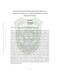 Aminah, Siti (2018) Strategi Pemasaran Mobil Merek Honda Brio Satya Studi Pada Pt Kerta Jaya Utama-Dealer Honda Sm Amin Di Kota Pekanbaru. Other thesis, Universitas Islam Riau.