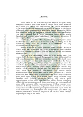 Prengki, Prengki (2017) Perjanjuan Jenewa Antara Iran Bersama IAEA (International Atomic Energy Agency) Tentang Nuklir. Other thesis, Universitas Islam Riau.
