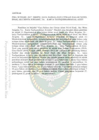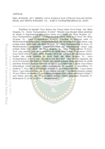 Sundari, Pika (2017) Gaya Bahasa Dan Citraan Dalam Novel Emak, Aku Minta Surgamu, Ya? Karya Taufiqurrahman Al-Azizy. Other thesis, Universitas Islam Riau.