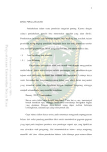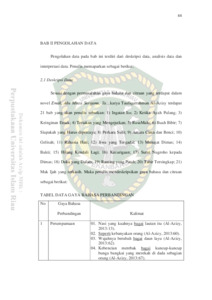 Penelitian ini berjudul “Gaya Bahasa dan Citraan dalam Novel Emak, Aku Minta Surgamu, Ya… Karya Taufiqurrahman Al-Azizy”. Masalah yang diangkat dalam penelitian ini adalah (1) Bagaimanakah gaya bahasa dalam novel Emak, Aku Minta Surgamu, Ya… karya Taufiqurrahman al-Azizy? ; (2) Bagaimanakah citraan dalam novel Emak, Aku Minta Surgamu, Ya… karya Taufiqurrahman al-Azizy?. Penelitian ini bertujuan untuk (1) Mendeskripsikan, menganalisis, menginterpretasikan dan menyimpulkan gaya bahasa yang terdapat dalam novel Emak, Aku Minta Surgamu, Ya… karya Taufiqurrahman Al-Azizy; (2) Mendeskripsikan, menganalisis, menginterpretasikan dan menyimpulkan citraan yang terdapat dalam novel Emak, Aku Minta Surgamu, Ya… karya Taufiqurrahman Al-Azizy. Teori yang peneliti pakai dalam penelitian ini adalah teori Burhan Nurgiyantoro (2014), Gorys Keraf (2010), Tarigan (2009), Pradopo (2012) dan teori para ahli pendukung lainnya. Sumber data dalam penelitian ini Novel Emak, Aku Minta Surgamu, Ya… karya Taufiqurrahman Al-Azizy yang diterbitkan oleh Diva Press tahun 2013 di Jogjakarta dan novel ini berjumlah 406 halaman. Metode yang penulis gunakan dalam penelitian ini adalah penelitian deskriptif. Hasil penelitian ini terdapat 12 gaya bahasa dan 5 citraan. Gaya bahasa perbandingan terdiri dari gaya bahasa perumpamaan 21, metafora 5, personifikasi 14, antithesis 5. Gaya bahasa pertentangan terdapat 21 gaya bahasa hiperbola, 2 gaya bahasa litotes, 7 gaya bahasa klimaks, dan 13 gaya bahasa sarkasme. Gaya bahasa pertautan terdapat 44 gaya bahasa antonomasia, 2 gaya bahasa asyndeton. Gaya bahasa perulangan terdapat 7 gaya bahasa epizeukis, dan 10 gaya bahasa anafora. Citraan penglihatan berjumlah 27, pendengaran 22, gerak 18, rabaan 1, dan penciuman 7.
