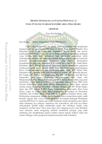 Fahlefy, Tiara Wati (2018) Proses Pengelolaan Pajak Pph Pasal 21 Pada Pt Bank Syariah Mandiri Area Pekanbaru. Other thesis, Universitas Islam Riau.