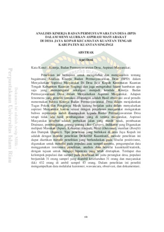 Deni, Apri (2018) Analisis Kinerja Badan Permusyawaratan Desa (BPD) Dalam Menyalurkan Aspirasi Masyarakat Di Desa Jaya Kopah Kecamatan Kuantan Tengah Kabupaten Kuantan Singingi. Other thesis, Universitas Islam Riau.