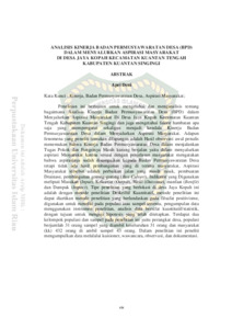 Analisis Kinerja Badan Permusyawaratan Desa (BPD) Dalam Menyalurkan Aspirasi Masyarakat Di Desa Jaya Kopah Kecamatan Kuantan Tengah Kabupaten Kuantan Singingi