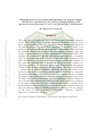 This study aims to describe and analyze the Performance Evaluation Apparatus County Public Works Spatial Planning Department Bengkalis in raising levies Heavy Equipment Rental. The basis of the Public Works Department Bengkalis in the implementation of the use of heavy equipment in Bengkalis author to see problems. Field picture obtained shows that the implementation of the field there are problems. There is the problem of the levy charged so that the target user charges resulting from the use of heavy equipment does not reach the target. This prompted the researchers to describe and analyze more deeply in an academic study on the phenomenon in the form of scientific work thesis. evaluation of the policy in principle is to assess a policy in penyelengaraanya there are problems. In this study the researchers refer to the relevant theories in order to address any underlying problems of evaluation theory used Daerah.Adapun Regulations relating to the evaluation presented by William N Dunn. This type of research that is applied here is qualitative research, which also uses the data related to the research conducted processed. This qualitative approach is defined as a procedure that produces descriptive data in the form of words written or spoken of people and behaviors that can be observed. The data collected in this paper more use of secondary data, otherwise the primary data is to supplement / support analysis of these secondary data obtained from interviews with informants who are competent in answering this question. The survey results revealed that the evaluation of the Regional Regulation Regarding levies in the rental of heavy equipment in practice there are still many problems. Inhibiting factor or an obstacle in the levy charged on the rental of heavy equipment is Effectiveness, Efficiency, adequacy, alignment, responsiveness, accuracy.