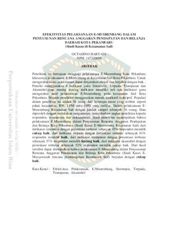 Haryadi, Octadino (2018) Efektivitas Pelaksanaan E-Musrenbang dalam Penyusunan Rencana Anggaran Pendapatan Kota Pekanbaru. Other thesis, Universitas Islam Riau.