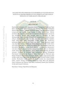 Analisis Strategi Peningkatan Penerimaan Pajak Bumi dan Bangunan Sektor Perdesaan dan Perkotaan Pada Badan Pendapatan Daerah Kota Pekanbaru