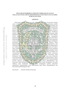 Government as a service provider (Service Provider) for the public is required to provide quality public services, because public service reflects the face of government in a country. To make this happen, Siak District Government stipulates the policy of giving incentives. The form of this policy is by the enactment of Regulation of Siak Regent No. 04 of 2013 on Provision of Incentives to Civil Servants of the Department of Population and Civil Registration of Siak Regency. Provision of incentives to Civil Service Officer of Siak Regency Population and Civil Registry with consideration of high work load and Legal risk in performing work. This study aims to determine how the effect of providing incentives on service quality at the Department of Population and Civil Registry Siak Regency. In order to get a detailed description of the authors using descriptive research method with a quantitative approach. The samples in this study were 88 people from Civil Service and Civil Registry Office of Siak Regency. Data collection is done through questionnaires. Testing research instrument using validity test and reliability test. Data processing technique using simple linear regression test, and hypothesis testing to know how big influence of giving of incentive to quality of service of population administration at Department of Population and Civil Registration of Siak Regency. The results of this study indicate that the effect of providing incentives on the quality of population administration services at the Department of Population and Civil Registration Siak Regency categorized Strong. Therefore, efforts must be made by the local government of Siak Regency to always intensify efforts to provide incentives in the form of material incentives or non-material incentives to all government apparatus who are assigned to the Department of Population and Civil Registry of Siak Regency so that the performance of the apparatus can be improved and ultimately will have an impact directly on improving the quality of population administration services carried out at the Department of Population and Civil Registration of Siak Regency.