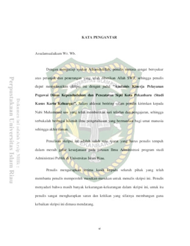 Tresha, Selviana (2018) Analisis Kinerja Pelayanan Pegawai Dinas Kependudukan dan Pencatatan Sipil Kota Pekanbaru (Studi Kasus Kartu Keluarga). Other thesis, Universitas Islam Riau.