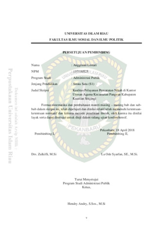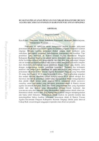 Lestari, Anggraini (2018) Kualitas Pelayanan Pencatatan Nikah di Kantor Urusan Agama Kecamatan Pangean Kabupaten Kuantan Singingi. Other thesis, Universitas Islam Riau.