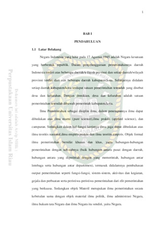 Astrika, Dina (2018) Hubungan Kerja Pemerintah Kampung Dengan Badan Permusyawaratan Kampung Dalam Penyelenggaraan Pemerintahan di Kampung Teluk Lanus Kecamatan Sungai Apit Kabupaten Siak. Other thesis, Universitas Islam Riau.