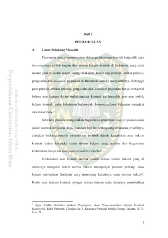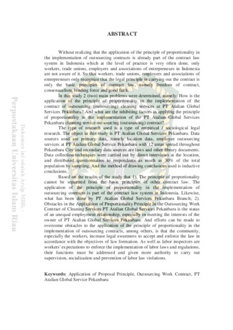 Penerapan Asas Proporsionalitas Dalam Pelaksanaan Kontrak Kerja Outsourcing (Alih Daya) Jasa Kebersihan PT. Atalian Global Service Pekanbaru