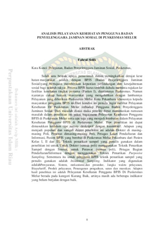 Sidik, Fahrul (2018) Analisis Pelayanan Kesehatan Pengguna Badan Penyelenggara Jaminan Sosial di Puskesmas Melur. Other thesis, Universitas Islam Riau.