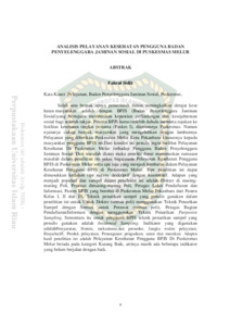 One form of government efforts in improving public health is BPJS (Social Security Administering Body) which aims to provide certainty of protection and social welfare for all people. BPJS participants must first request a referral to a first-rate health facility (Faskes I), including Puskesmas. But in fact quite a lot of people who complained about the slow service provided by Melur Puskesmas Pekanbaru City especially to this BPJS user community. From this condition the authors want to see Health Services In Melur Puskesmas against Social Security Provider Organizer User. From the above problem, the researcher can formulate the problem formulation in this research that is how Health Service of BPJS Users at Melur Health Center and what are the obstacles in Health Service of BPJS Users at Melur Health Center. This type of research can be incorporatedinto descriptive and quantitative survey types. As for the population and sample in this research is Doctor in each Poly, Nurse in each Poly, Registration and Information Counter Officer, Patient of BPJS who seek treatment at Puskesmas Melur Pekanbaru from Patient Class I, II and III. The sampling technique the authors used in this study was for Doctors (all poly) using Sampling Techniques with Census, for Nurses (all poly), Registration / Information Officers using Purposive Sampling Removal Techniques. Meanwhile, for users of BPJS sampling technique that the author uses is Incidental Sampling. Indicators used are Requirements, Systems, mechanisms and procedures, Service period, Cost / tariff, Product service, Complaint handling, suggestions and feedback. The result of this research is BPJS Users Health Service In Melur Health Center is in the category of Less Good, meaning there are still some indicators that have not run well.