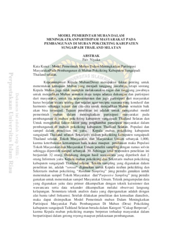 Niyaka, Fais (2018) Model Pemerintah Muban Dalam Meningkatkan Partisipasi Masyarakat Pada Pembangunan di Muban Pokcikting Kabupaten Sungai Padi Thailand Selatan. Other thesis, Universitas Islam Riau.