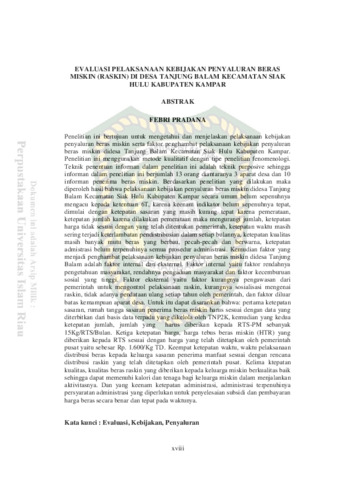 Pradana, Febri (2018) Evaluasi Pelaksanaan Kebijakan Penyaluran Beras Miskin (Raskin) Di Desa Tanjung Balam Kecamatan Siak Hulu Kabupaten Kampar. Other thesis, Universitas Islam Riau.