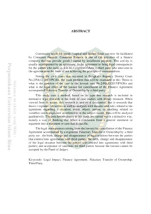 | Uncontrolled Keywords: | Legal Impact, Finance Agreement, Fiduciary Transfer of Ownership, Third Party |