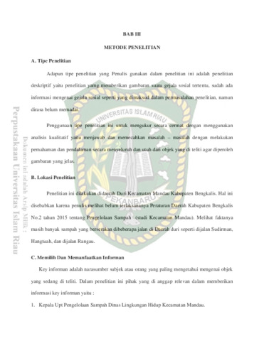 Hartati, Irani (2018) Implementasi Peraturan Daerah Kabupaten Bengkalis Nomor 2 Tahun 2015 Tentang Pengelolaan Sampah (Studi Kasus Di Kecamatan Mandau). Other thesis, Universitas Islam Riau.