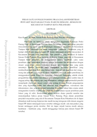 Iskandar, Iskandar (2018) Peran Satuan Polisi Pamong Praja Dalam Penertiban Penyakit Masyarakat Pada Warung Remang –Remang Di Kecamatan Tampan Kota Pekanbaru. Other thesis, Universitas Islam Riau.
