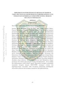 Instruction of Bengkalis regant number 36 year 2015 about the instruction of regant of rural infrastructure strengthening program (INBUP-PPIP) is a program of acceleration of rural infrastructure development by emphasizing community empowerment throught active participation, self-help and mutual assistance in the preparation of development planning, implementation and supervision in addition, INBUP-PPIP program is also to improve welfare and provide employment opportunities for rural communities and build self-reliance. The purpose of this research is to know the implementation of of Bengkalis Bupati number 36 year 2015 about the instruction of Bupati of reinforcement of rural infrastructure program in village Meskom Bengkalis subdistrict. The implementation assessments used in this study include the policy standards and objectives,,resources, communication among the implementing agencies, the characterstics of the implementing agency, the social, economic and political environment and the implementation stance. The location of the research was conducted in village Meskom sub district Bengkalis with descriptive survey research method by doing observation, questionnaire, interview and also documentation. The result of the research shows that the implementation of Bengkalis Bupati infrastructure number 36 year 2015 in village Meskom Bengkalis subdistrict is said to be quite implemented it is proved from the result of recapitulation with 52% percentage is the category “enough implemented” this is seen from the implementation is not optimal because INBUP-PPIP, lack of self- reliance and mutual cooperation of the community, lack of implementation of rural infrastructure development and lack of transparency from the implementation.
