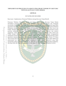 | Uncontrolled Keywords: | Implementation, Mayor Regulation on Non-Smoking Area. |